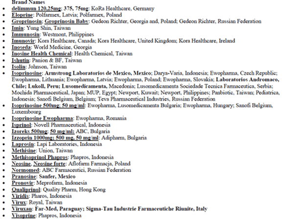The list of all inosin prannobex drugs: